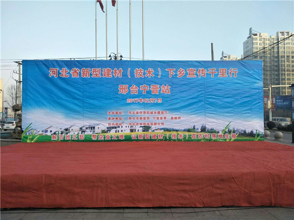 2017年12月7日,邢臺市泓升建材節(jié)能有限公司攜手建設廳于寧晉站一起舉行下鄉(xiāng)宣傳活動!其宗旨:解百姓之憂,幫企業(yè)之難,讓新型建材在農(nóng)村落地生根!